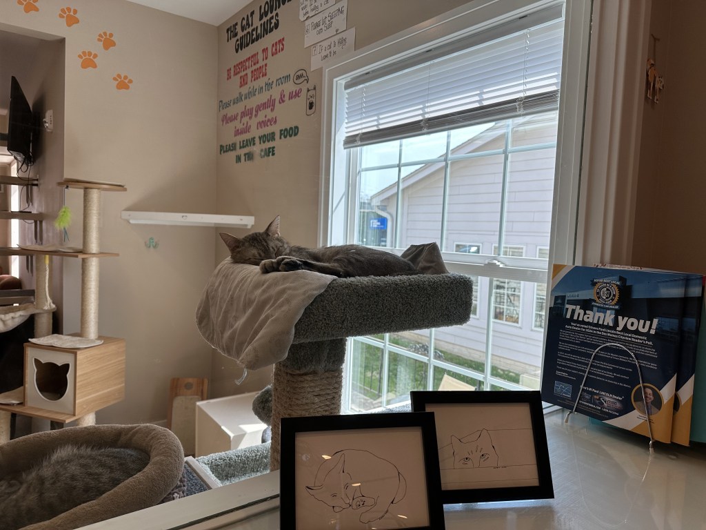 Toys, food, and tall cat trees will be everywhere, but the atmosphere is peaceful. Unless allergies are in the picture, the environment is clean and does not smell.